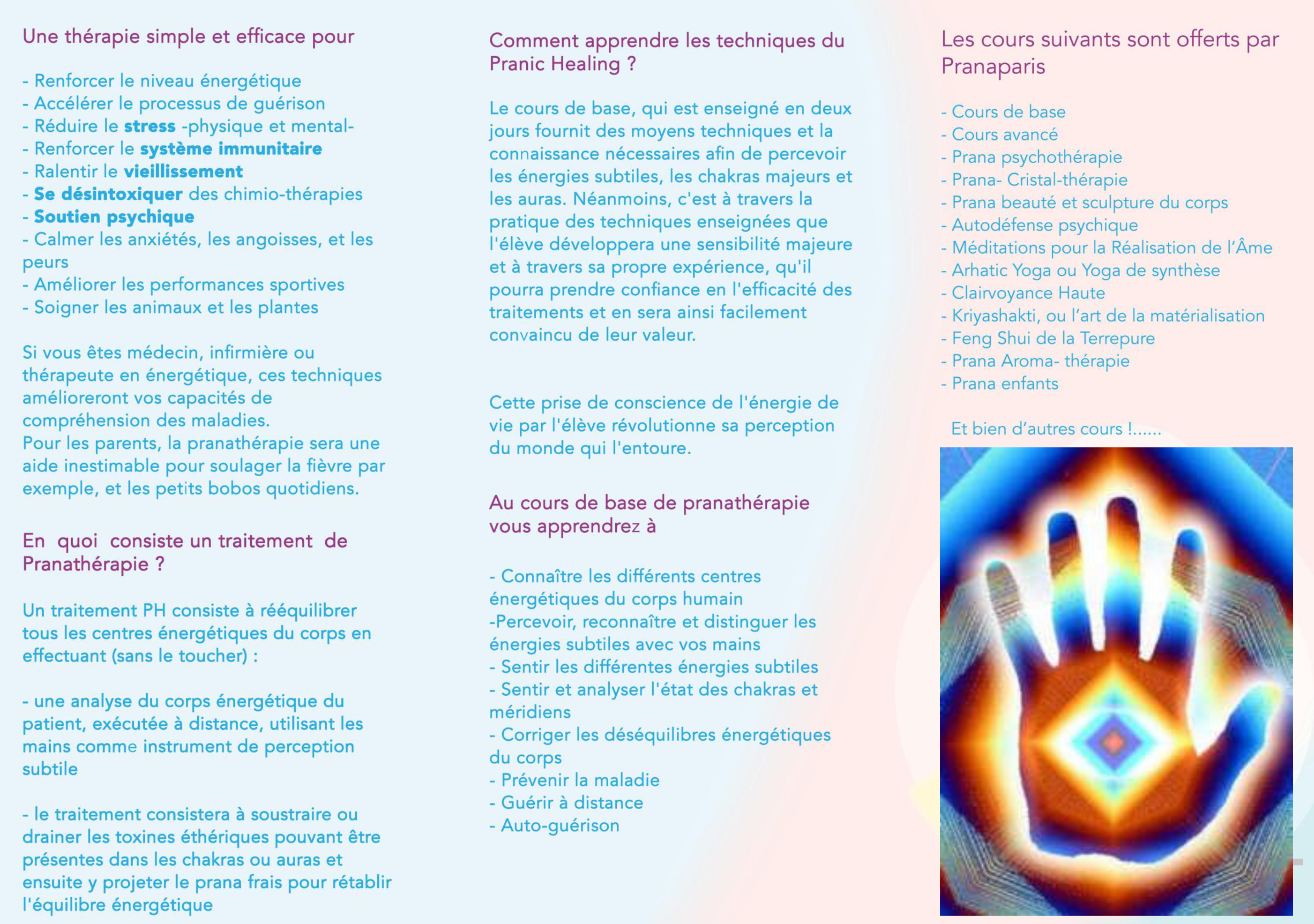 acquis durant les cours de l’énergie pranique.