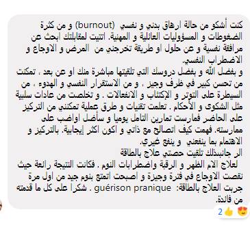 J’aimerais bien vous divulguer un secret que j’ai constaté durant plusieurs séances de traitement : l’énergie est intelligente, elle continue à agir même si vous arrêter le traitement."